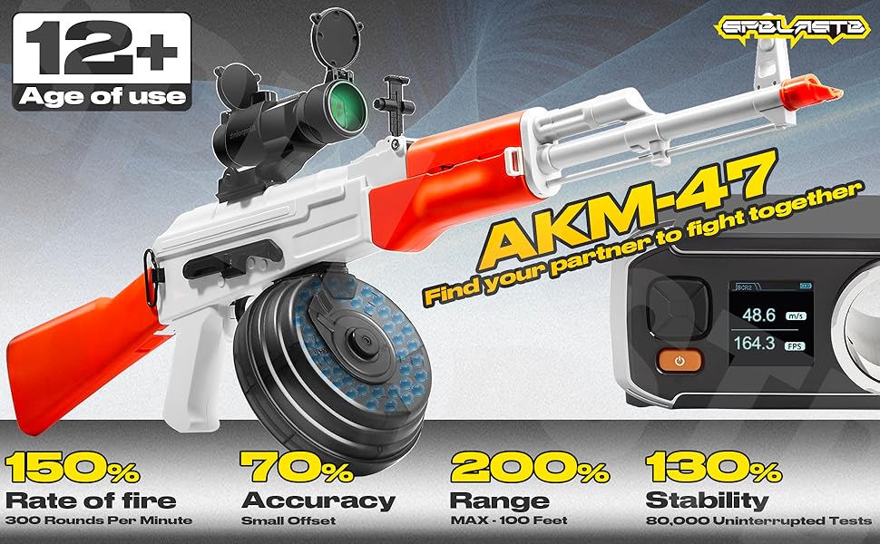 Amazon Com Large Akm 47 Gel Ball Blaster 200fps And Shoot Up To 100ft Gel Ball Blaster Double Shooting Modes Suitable For Adults Age 12 Toys Games